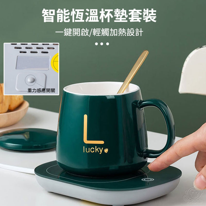 超夯特惠:一入組,豪華禮盒裝(55°智能恆溫杯墊+陶瓷杯+陶瓷杯蓋+小勺子)只需NT$998