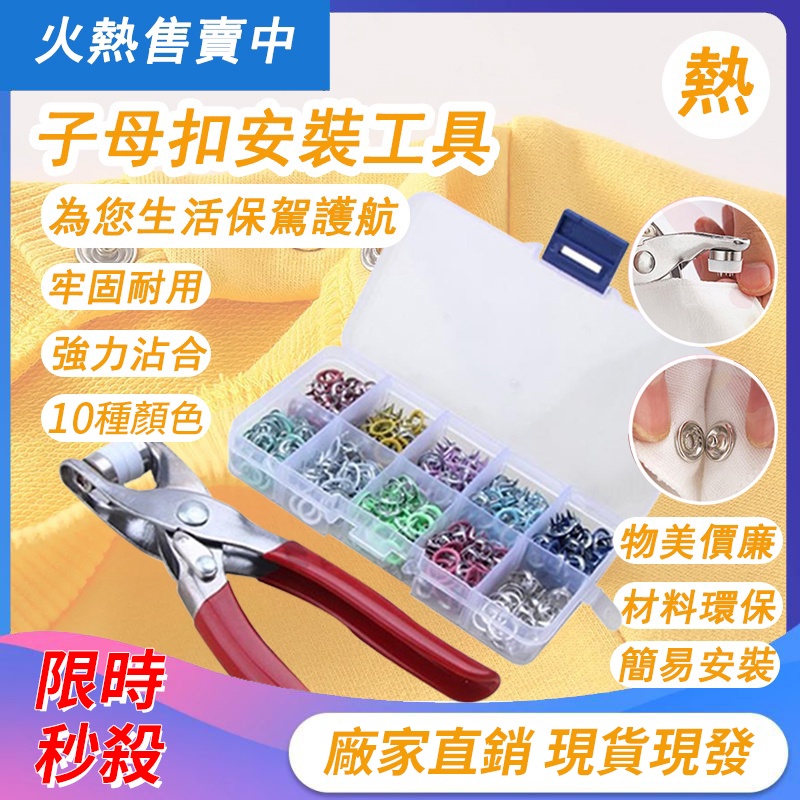 【日本爆款!居家必備】萬能金屬按扣夾壓具套件(10種顏色,滿足各種需求)按扣免縫工具【現貨直發】比縫紉機還好用,衣服,鞋子,褲子等紡織品都可以用 ,採用全鋼材質,永不生鏽,可水洗,環保純銅不掉色,材料加厚,超光滑 能貼近寶寶肌膚的紐扣!現在下單再贈特別福利!