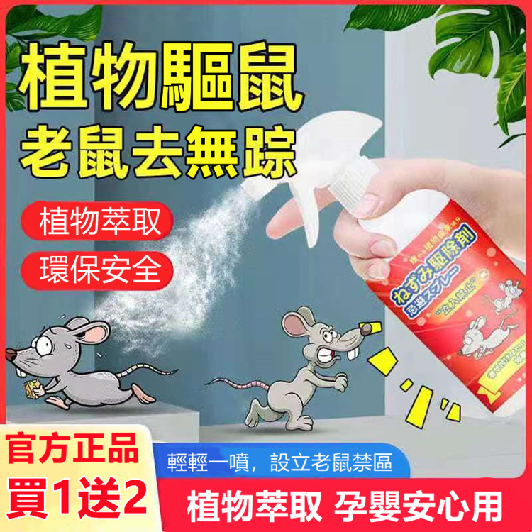 日本最新研製強效驅鼠劑噴劑 輕輕一噴,老鼠去無踪!讓老鼠聞風喪膽!再也不敢來!植物提取,環保無害,母嬰家庭可用,效果持久!