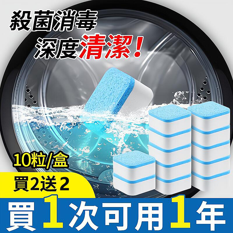 洗衣機去污清潔泡騰片,高達99%殺菌率,適合清潔水槽馬桶多種用途,買二送二共四盒僅售NT$999